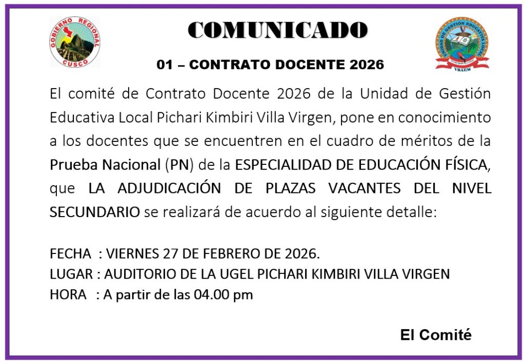 RELACIÓN DE APTOS Y NO APTOS DEL PROCESO DE CONTRATO DE AUXILIARES DE EDUCACIÓN 2026 – UGEL PKVV